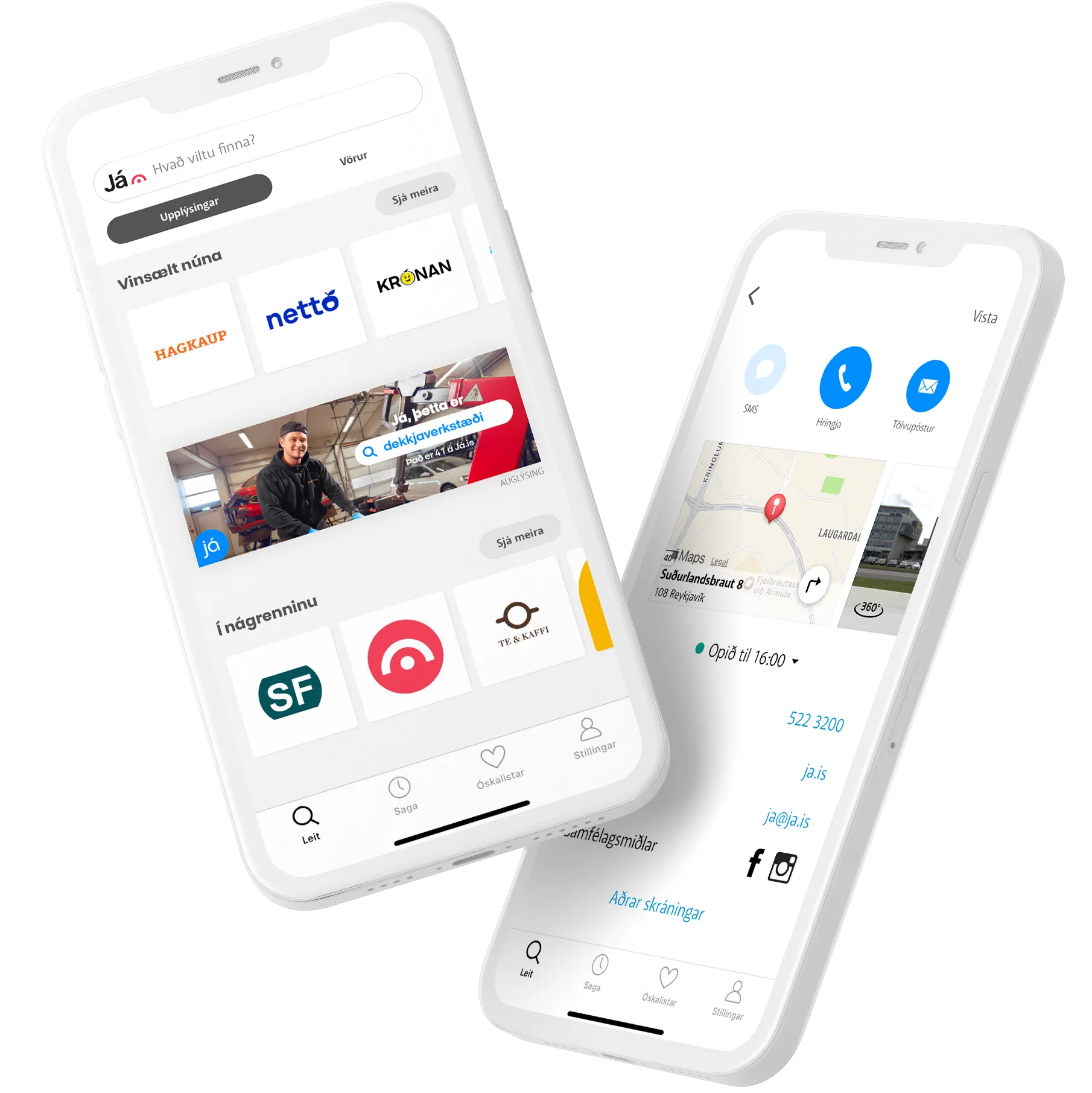 Með Já.is appinu finnur þú fólk og fyrirtæki á Íslandi og besta verðið í íslenskum vefverslunum. Í appinu er nafnabirtir sem sýnir upplýsingar um þann sem hringir áður en símtali er svarað.