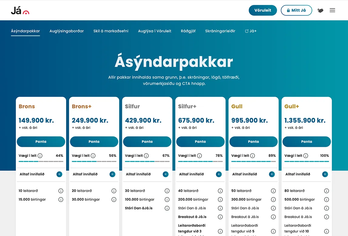 Já býður upp á pakka í öllum stærðum fyrir fyrirtæki með mismunandi þarfir.